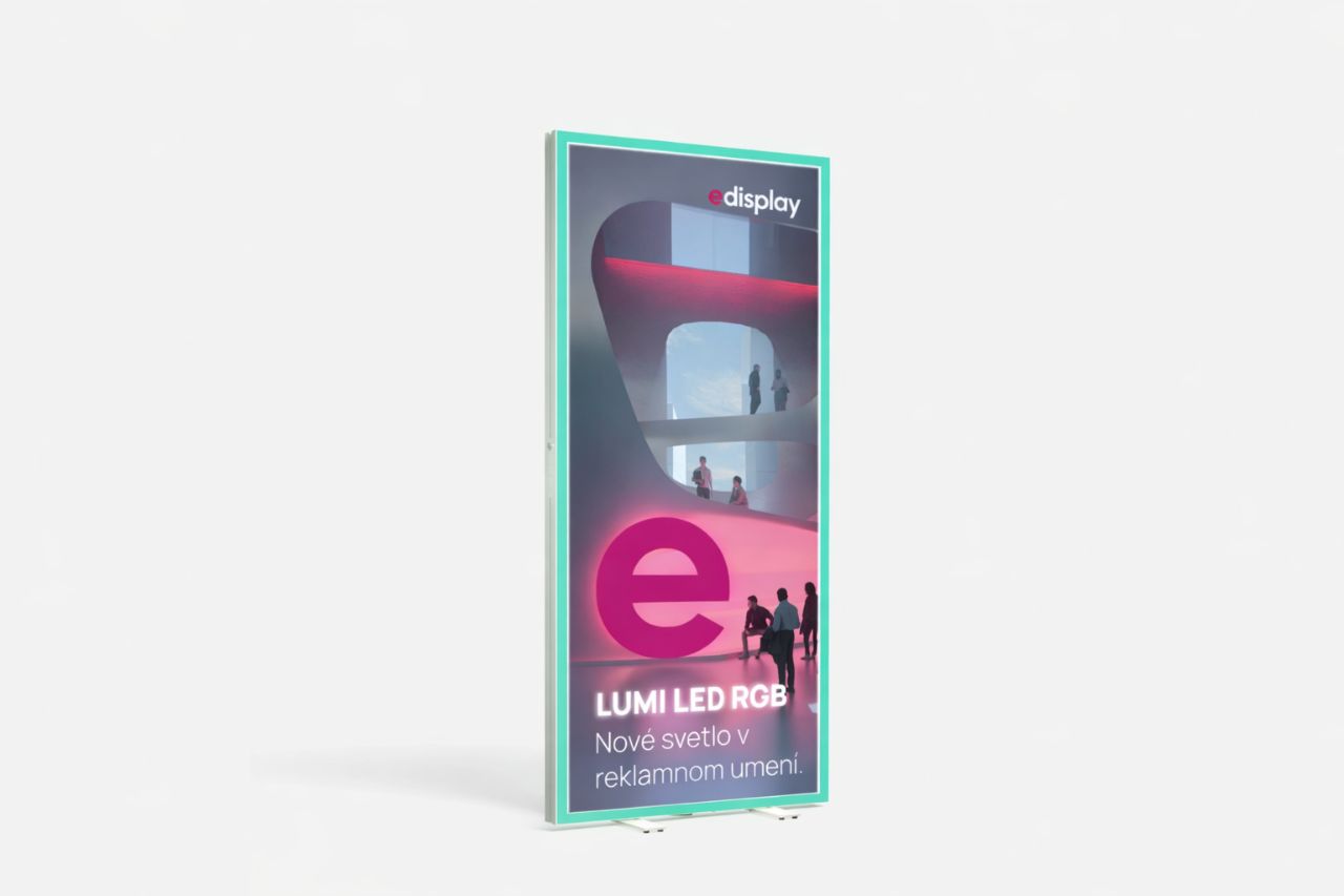 Plne podsvietené LED lightboxy a LED stolíky určené pre prezentácie, výstavy, interiéry a showroomy. ... Pre interiéry a showroomy ponúkame LED lightboxy v rôznych hrúbkach a rozmeroch jednostranne alebo obojstranne svietiacich, vrátane fixačných prvkov pre zavesenie na stenu alebo zavesenie zo stropu. Pre prezentácie ponúkame typizované jednoducho rozložiteľné lightbox steny značky LUMI balené v pojazdnej taške v daných rozmeroch. Pre výstavy ponúkame modulárny systém LUMINOR v rozmeroch podľa Vášho výberu. Steny systému LUMINOR možno vzájomne prepojiť do väčších celkov a rôznych uhlov. LED steny LUMI a výstavné stánky LUMINOR sú obojstranne svietiace s vymeniteľnými textilnými panelmi.